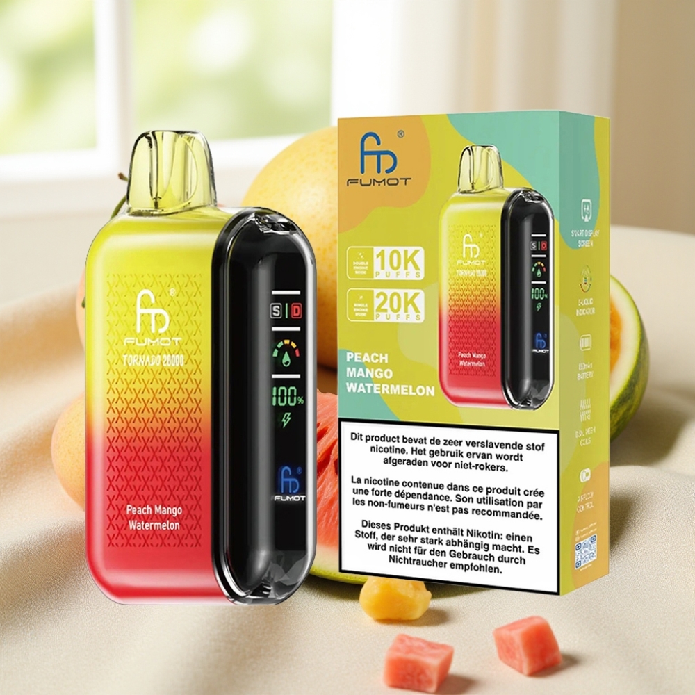 Fumot Tornado 20000 พัฟ Dual คอยล์ตาข่าย 20ml 850mAh พีช มะม่วง แตงโม
